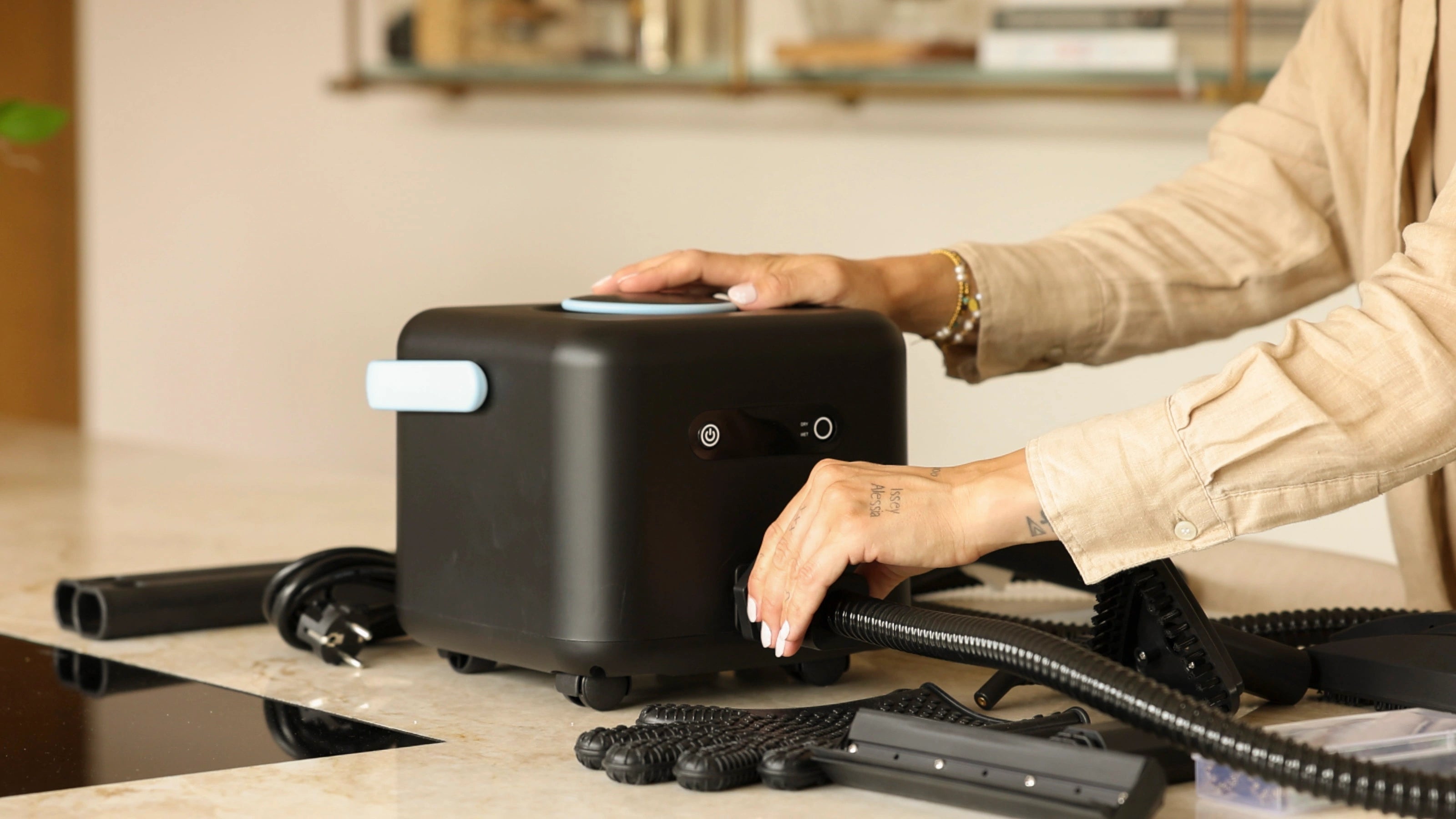 Der CleanKoala Multi Handschuh schützt deine Hände optimal vor Hitze während der Verwendung des Dampfreinigers.